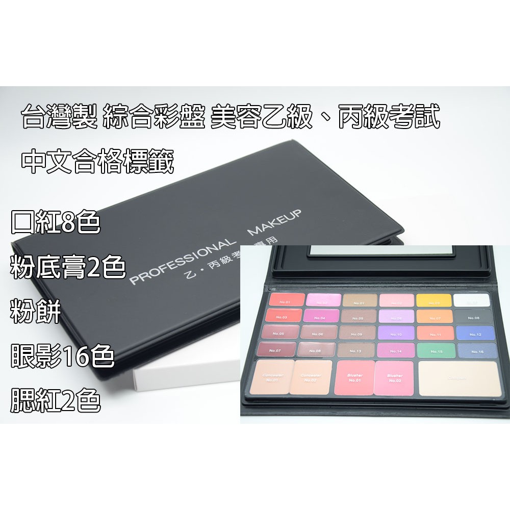 德馨美容 台灣製口紅8色 粉底膏2色 粉餅 眼影16色 腮紅2色彩盤組化妝盤彩妝盤美容美髮乙級 丙級考試 蝦皮購物