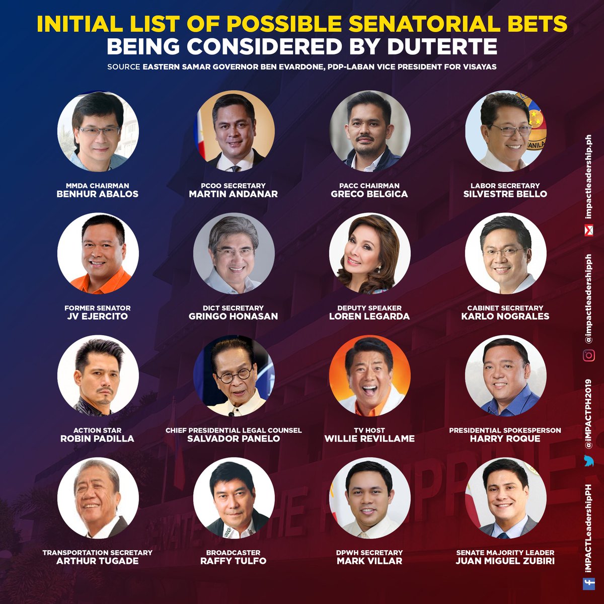 Impact Leadership A Twitter Look Initial List Of Possible Halalan2022 Senatorial Candidates Being Considered By President Rodrigo Duterte Based On His Discussions With Leaders Of The Ruling Pdp Laban Party According To Gov