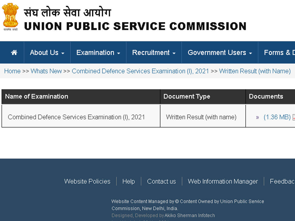 Upsc Cds Result 2021 Declared At Upsc Gov In Check Interview Merit List And Other Details Here India Com