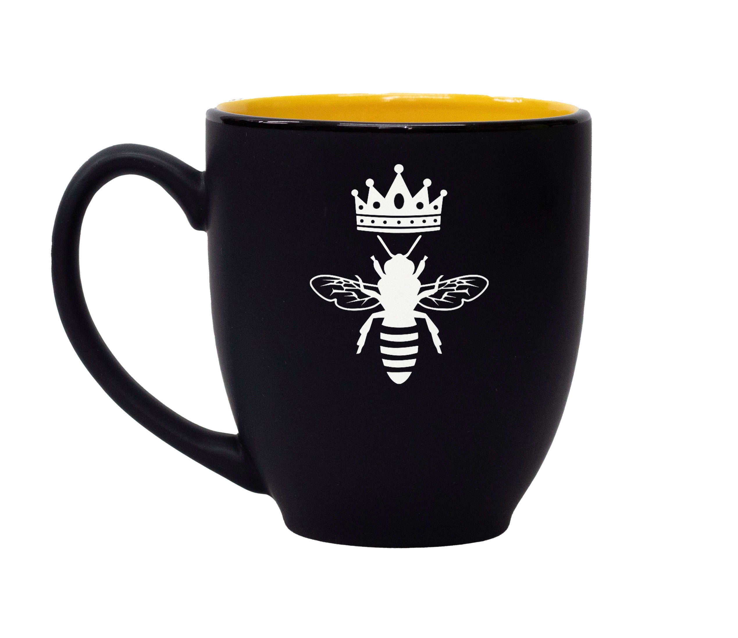 Start your day off right with a custom mug. Present the head of the hive with this ceramic mug featuring a black queen bee with lustrous gold accents. Not Sold On Amazon note.