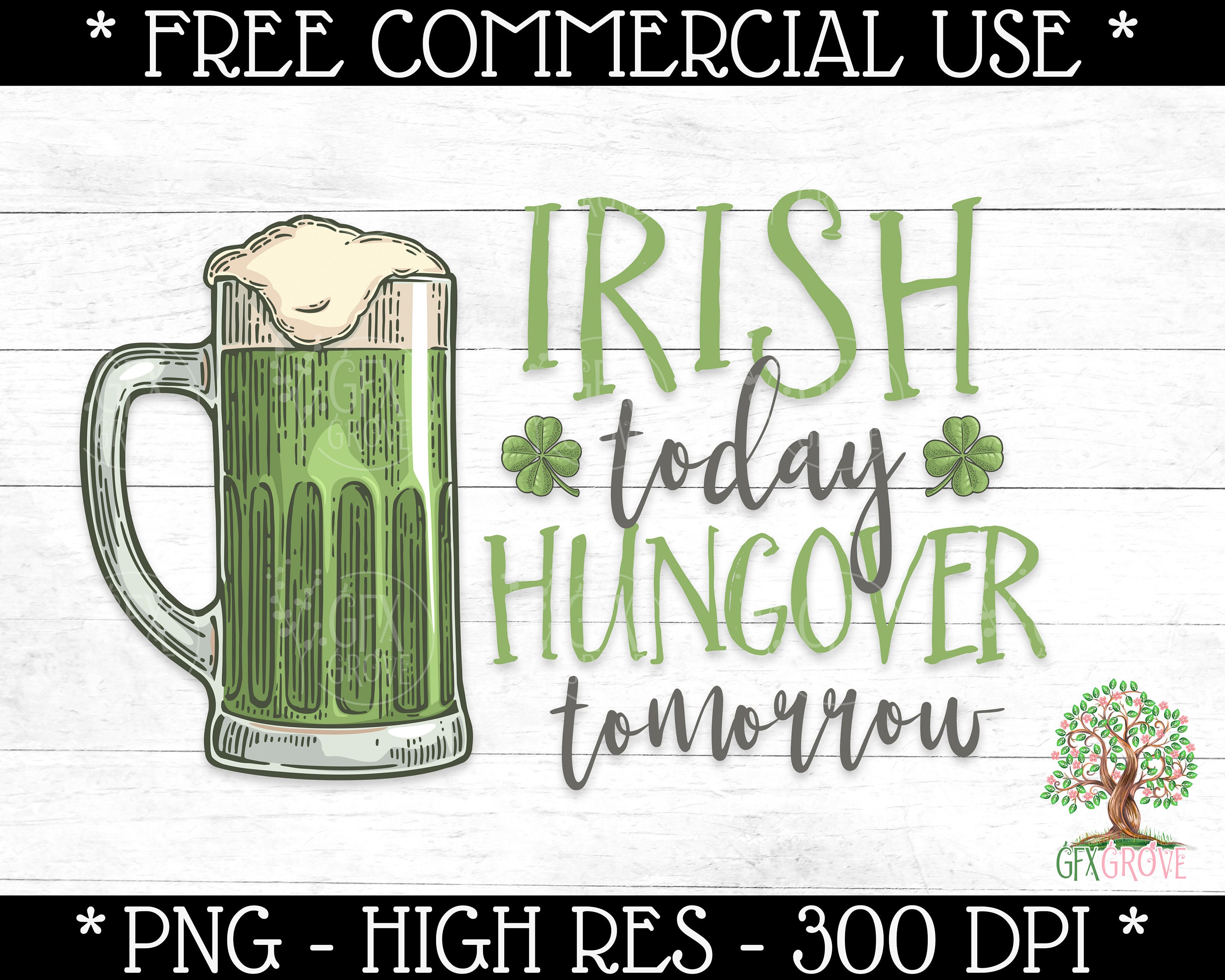 Irish Today Hungover Tomorrow. About Irish Today Hungover Tomorrow Graphic. CHECK OUT MY SHOP FOR OTHER COOL DESIGNS FOR YOUR NEXT PROJECT.